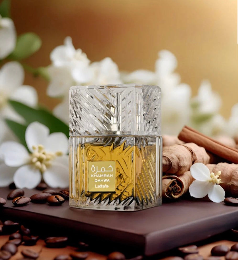 Khamrah Qahwa de Lattafa Perfumes est un parfum Orientale Vanillé pour homme et femme. Khamrah Qahwa a été lancé en 2023. Les notes de tête sont Cannelle, Cardamome et Gingembre; les notes de coeur sont Praliné, Fruits confits et Fleurs blanches; les notes de fond sont Vanille, Café, Fève de tonka, Benjoin et Musc.
